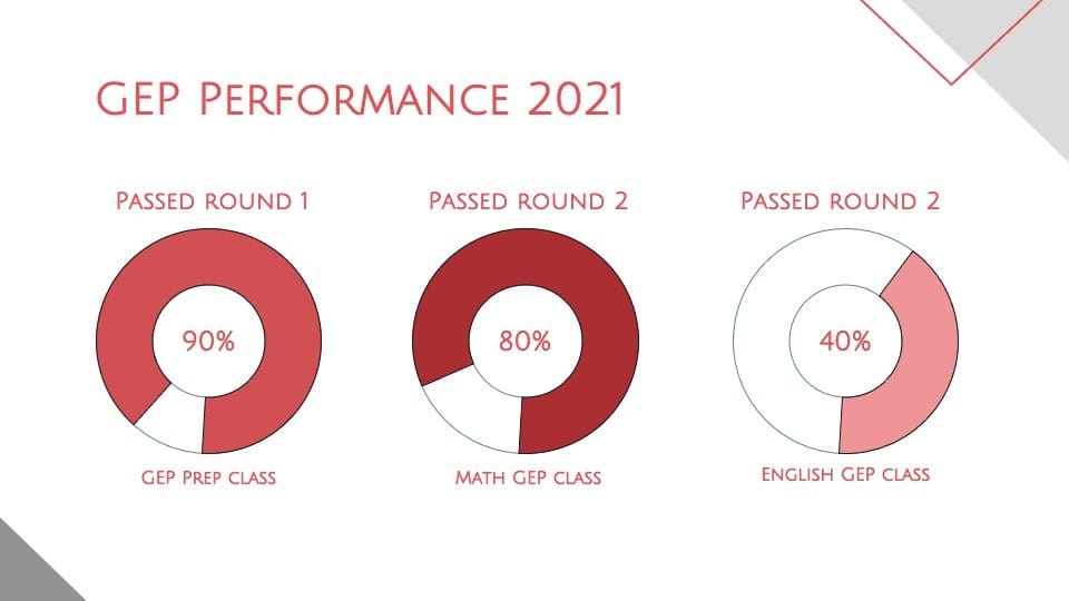Our GEP Preparation Classes consist of interested and talented students who wish to do well for the GEP screening and selection tests. While all these students are very bright and hard-working, they still gave us a pleasant surprise when about 90% of them passed the first round (GEP Screening Test) back in October 2021!