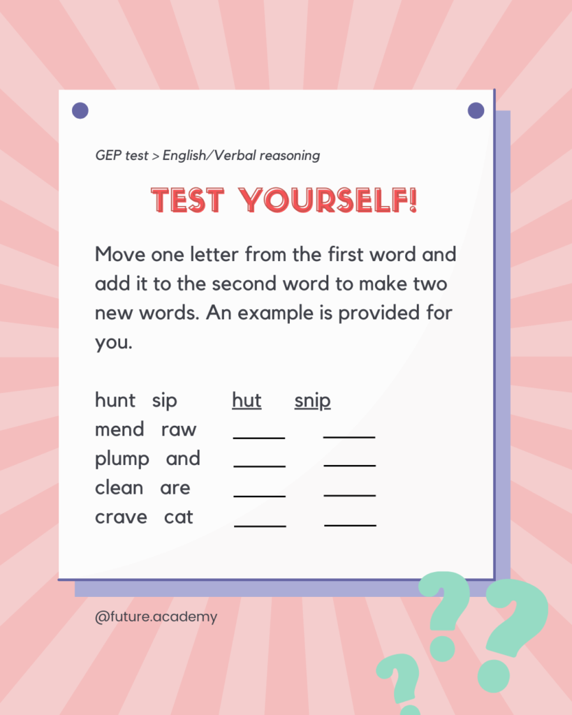 These practice sessions include English, Maths, and general reasoning questions. While there are no official past GEP test papers available, we curate similar question types from IQ and general ability tests to help students prepare.