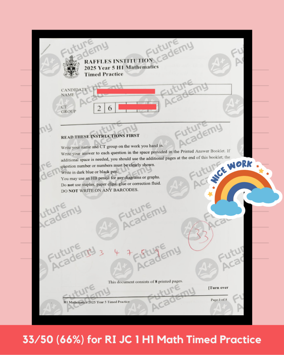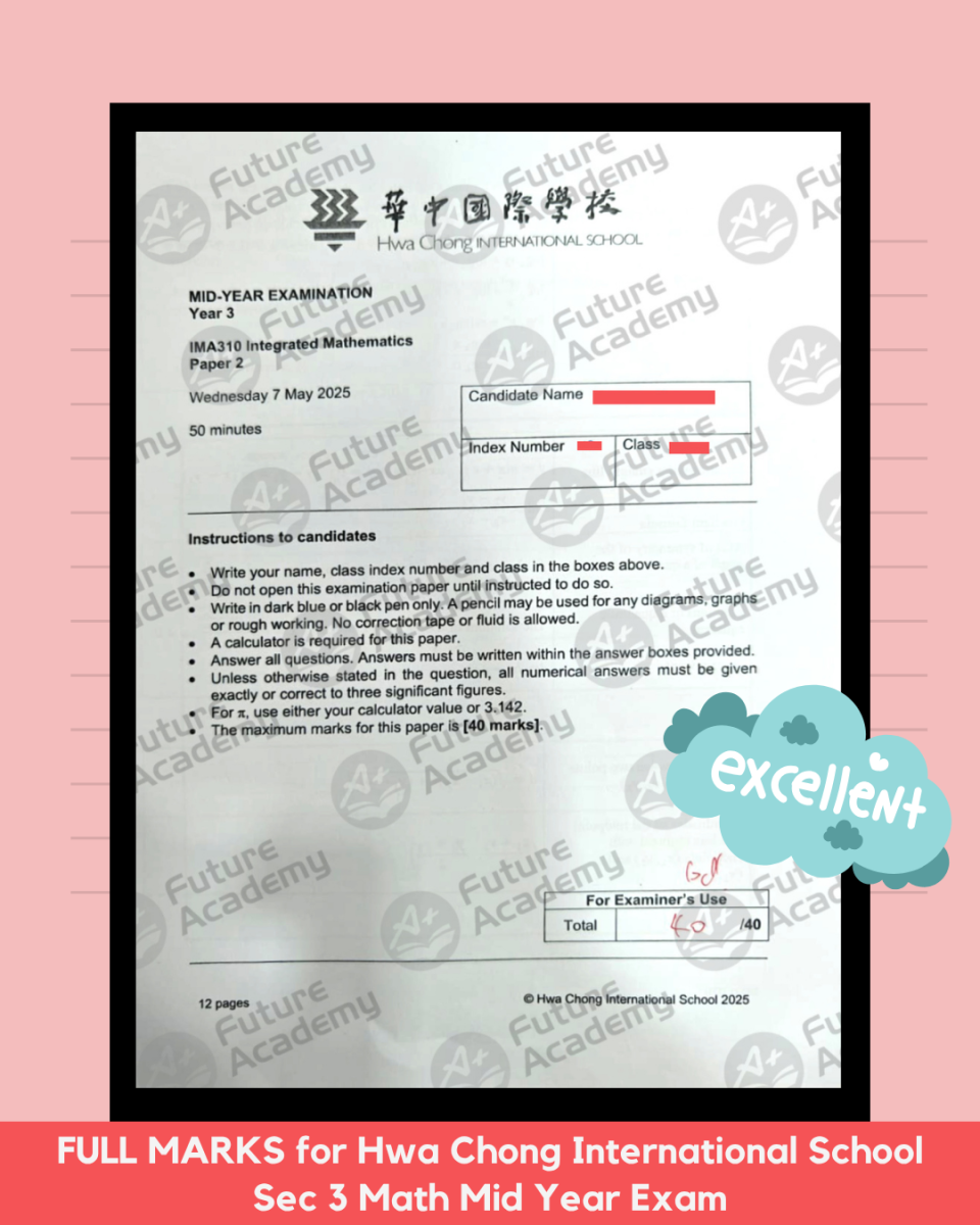 "As I was not coping well with Mathematics, I went to my Future Academy tutor to seek clarification. Not only did he explain the topics well, but also he coached me in the right examination techniques such as managing my time. For this, I managed to get the hang of doing the questions and I thank him greatly. Moreover, he was warm and friendly, welcoming me and often asking how I was doing in a humorous tone. Thus, I thank him for helping me in getting a 6 for HL Mathematics. Without him, I would not be standing where I am today. Thank you Future Academy once again!"