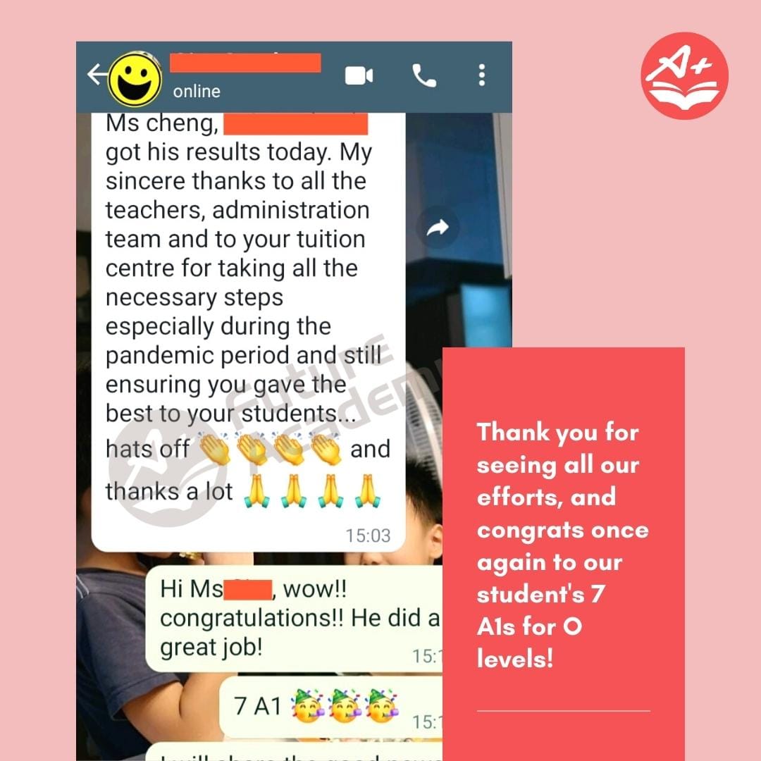 In our tuition centres, too, we have many reasons to be proud of our students! A few of our students scored 7 to 8 A1s, showing off their consistency and all-rounded capabilities! Most of them also scored As and Bs in the subjects they received tuition in, showing great improvement from their poorer grades before.
