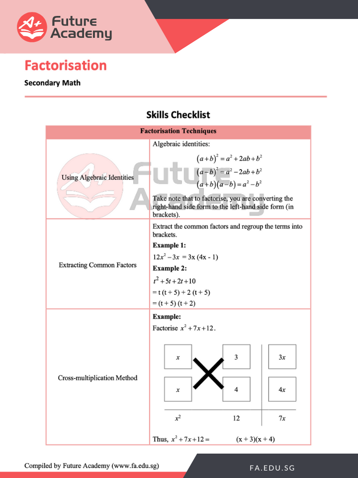 If you are feeling the steep learning curve in algrebraic factorisation, you don’t need to struggle alone! Here are some tips from our IP Math tutors at Future Academy!