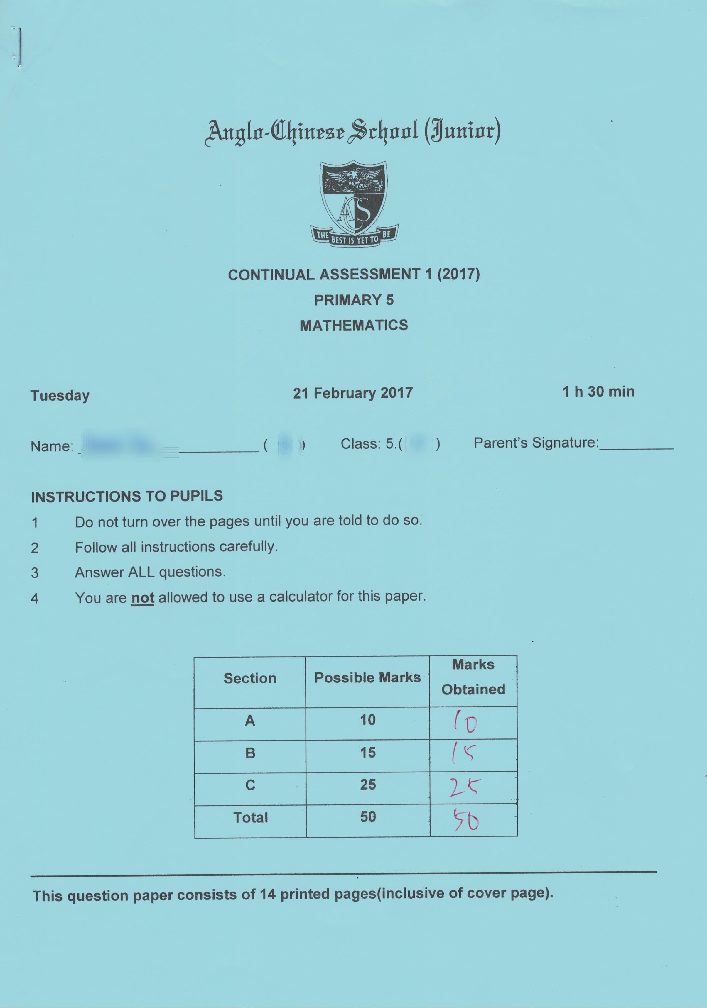 Congratulations to our student in P5 Math tuition class! He scored full marks in Math CA1 this year.