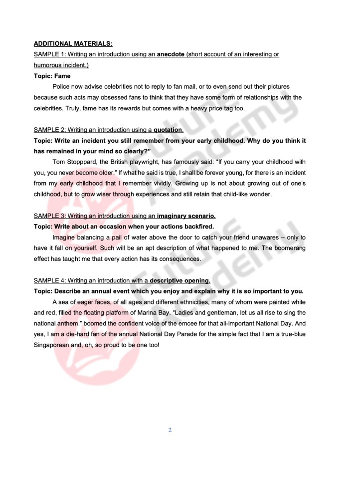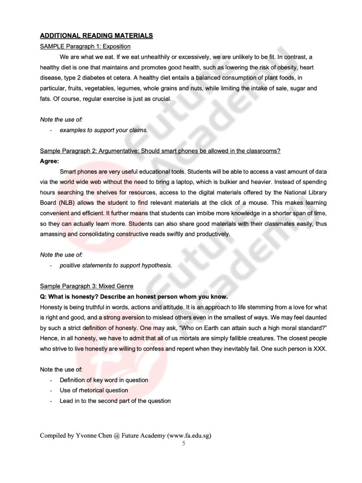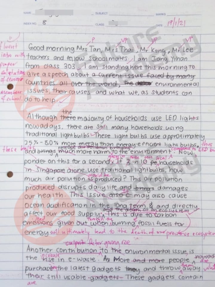 For this reason, we have prepared some samples of what our students get in our secondary school or IP English tuition class. From example lesson notes to samples of marked essays, feel free to browse and even use them for your own revision!