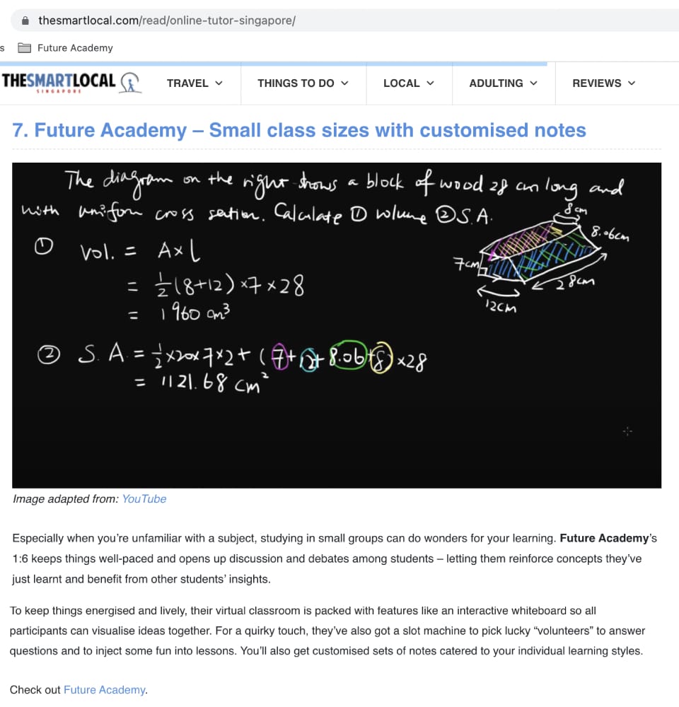 In their round-up, they highlighted Future Academy for our small group tuition and highly customised lessons. Indeed, we do so as we believe this format can cater more closely to the needs of our students, rather than a one-size-fits-all teaching approach.