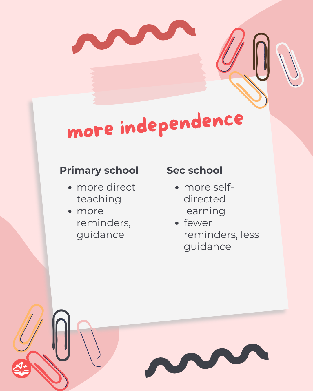 While becoming more independent is part of growing up, many lower secondary students are still not used to these additional responsibilities, and some may struggle as a result. So, what can you do? As a parent, it’s crucial to anticipate these changes and equip your child with skills to manage themselves.